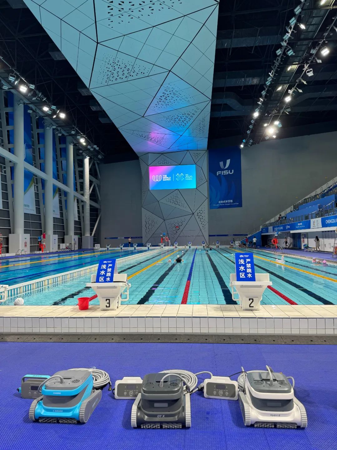 13日,世运会皮艇球项目在简阳文体中心游泳馆开赛,与运动员们一同出现在泳池里的还有几位特殊的“清洁工”。据场馆工作人员介绍,赛事期间场馆投入了泳池清洁机器人设备,完成对泳池的日常维护及清洁任务。
